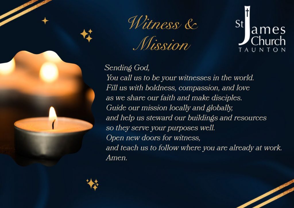 Our “Prayer Chain” is a group of people who will pray regularly for you or for someone known to you. All you need to do is to email as much (or as little) information that you consider appropriate to the coordinator at , you can pass their name and what is the prayer need to prayer@stjamestaunton.co.uk. They will then email the chain members with suitably-worded details, and keep in touch with you periodically for updates.