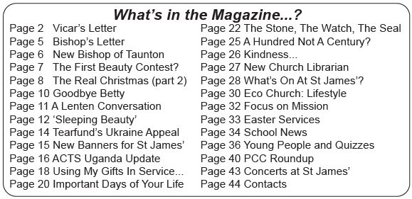 Click the button below to view or download the March edition of the church magazine, or pick up a printed copy from the back of the church.